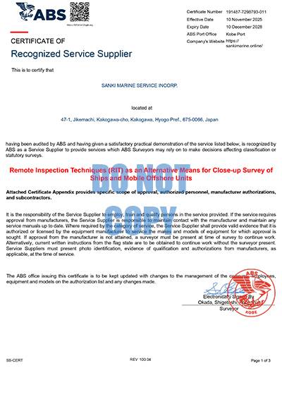 following a thorough examination by classification society. Vessels belong to different classes. We are approved by various organizations, allowing